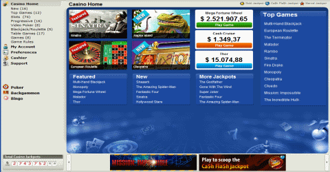 The categories of games available are: slots, jackpot slots , table games, video poker and live dealer games.