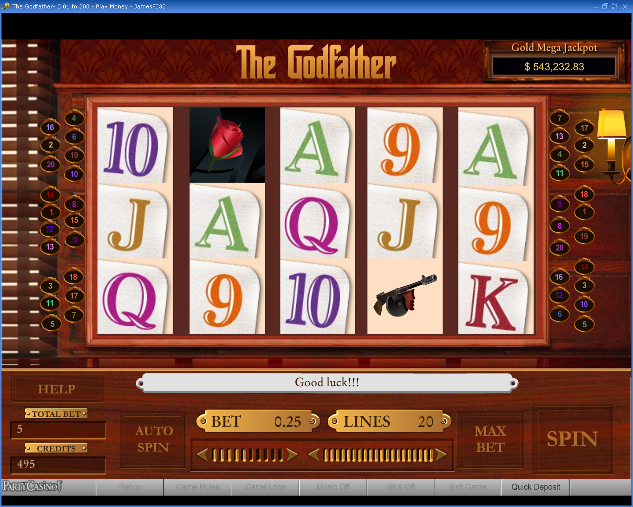 I chose to use my Visa debit card to deposit; transferring £40 I was playing with £80 after picking up my first 100% bonus and playing the Godfather slot within a few minutes.